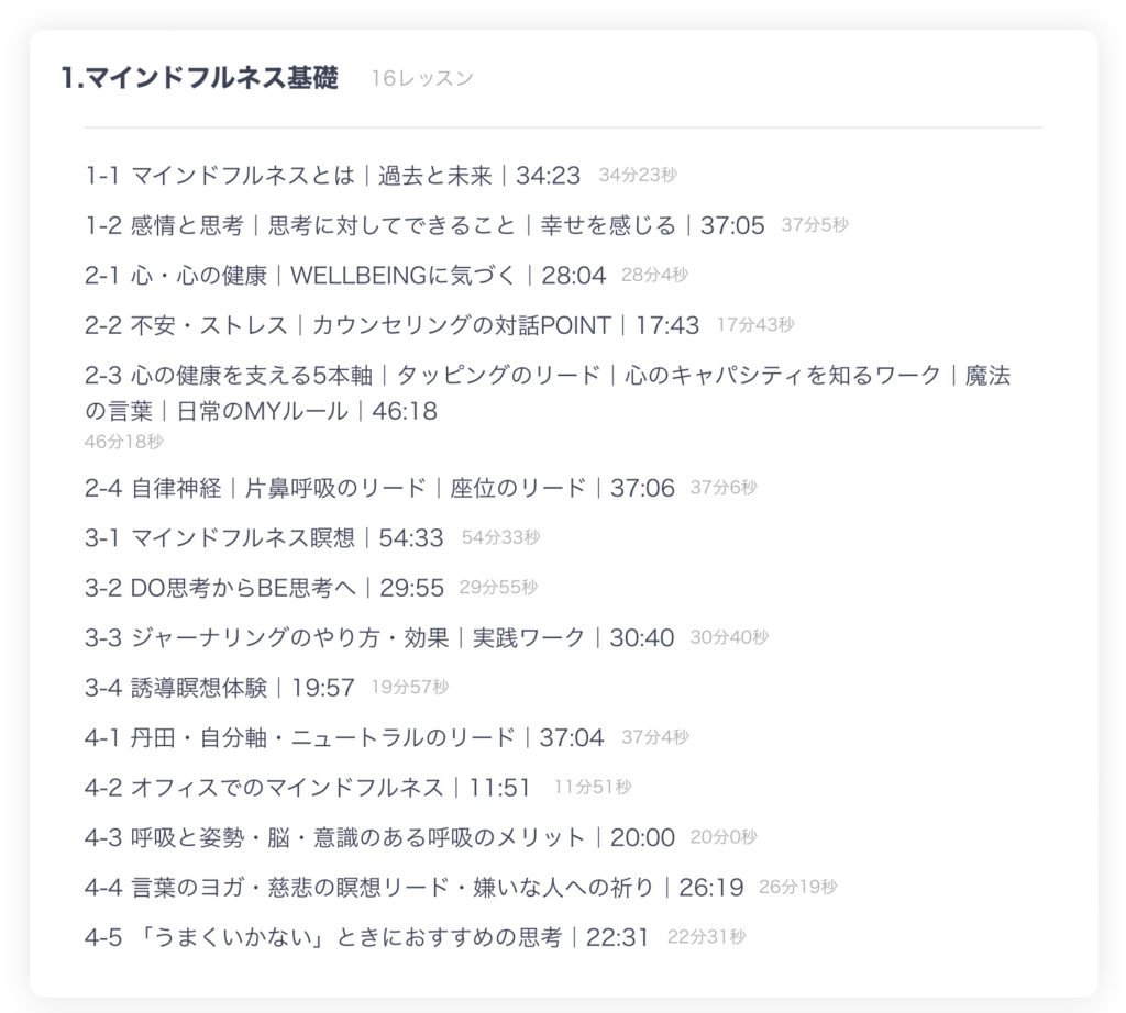 - マインドフルネス系レッスン動画5時間分